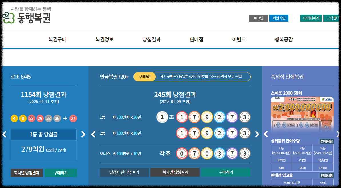 매주 토요일마다 진행되는 로또 추점은 구매자에게 "만약 내가 1등에 당첨되면 얼마나 좋을까?"라는 생각을 심어주기 때문에 일주일 동안 행복 회로를 돌릴 수 있게 해 줍니다. 저 또한 이번주에 로또를 구매했지만 1등은커녕 5등도 되질 않았네요. 그렇다면 누가 1등에 당첨됐을까요? 신변 보호상 당첨자를 알 수는 없지만 당첨자가 구매한 지역은 확인해 볼 수 있는데요. 이번 포스팅에서는 로또 1등 당첨 지역을 확인하는 방법에 대해 소개드려보도록 하겠습니다.
