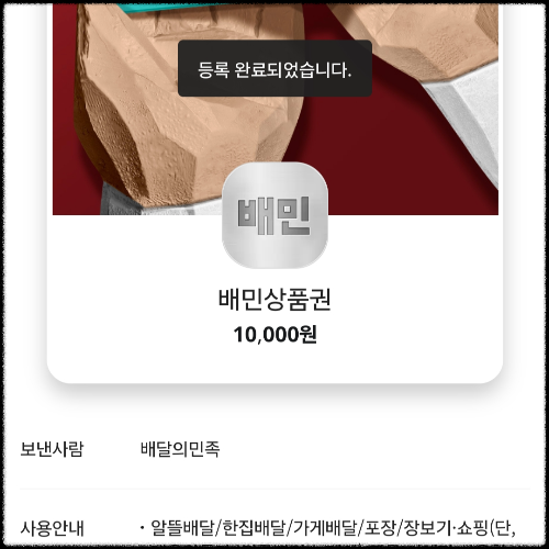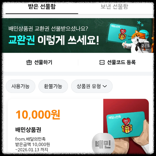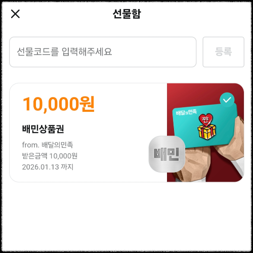※ 카카오톡 선물하기, 배달의민족 쿠폰 등록