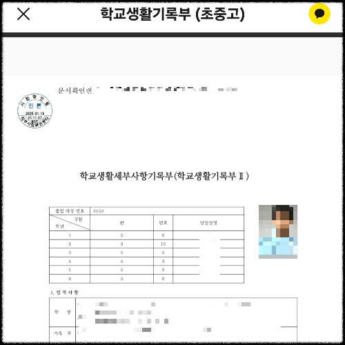 여기까지 카톡 지갑 내 전자증명서를 이용해서 초등학교부터 중학교, 고등학교까지의 생활기록부를 발급 및 조회하는 방법에 대해 소개드렸습니다. 유년 시절 본인의 생활기록부가 궁금하다면 해당 게시글 내용을 참고로 간편하게 발급받아보시길 바랍니다.