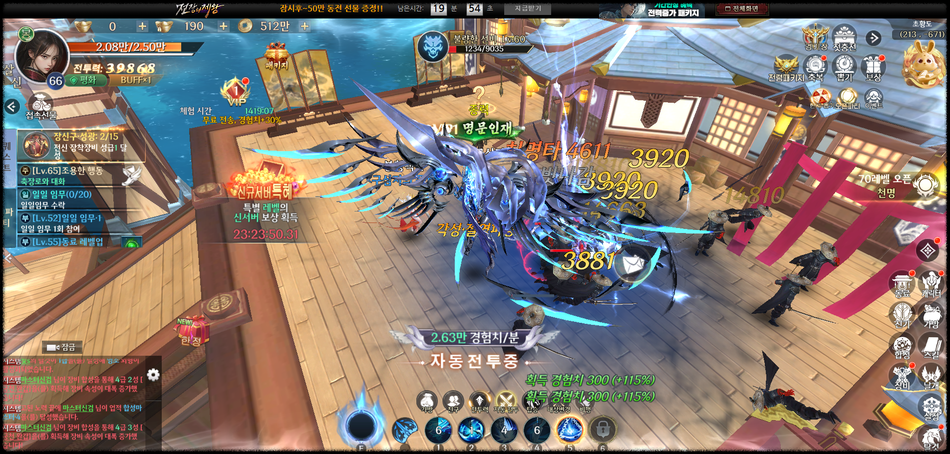 필자의 경우 가장 강력한 직업으로 소개되고 있는 "살신" 직업을 택했습니다. 게임 초반에는 메인 퀘스트를 중심으로 플레이하다 보면 빠른 레벨업과 동시에 전투력이 가파르게 향상되는 것을 확인해 볼 수 있습니다. 또한 조작법 및 진행도는 오토 플레이 기반으로 진행되기 때문에 메인 퀘스트를 선택하고 켜놓기만 해도 전투력이 높은 장비를 착용하고 시나리오가 자동으로 진행되는 편리함을 만끽할 수 있었습니다.