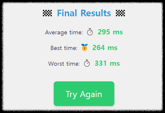 총 5번 수행되며 매번 사용자의 반응 속도를 위와 같이 표기해 주는 것을 알 수 있다.