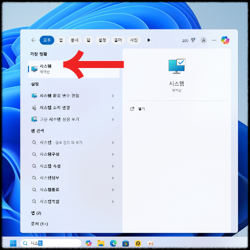 윈도우11 바탕화면 아이콘 중 내 컴퓨터 바로가기 만들기를 진행하기 위해서는 위와 같이 [시스템] 메뉴로 이동해줘야 한다.