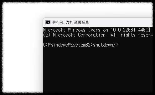 "명령어/?" 해당 명령어는 입력한 명령어에 대한 설명과 함께 부가적인 옵션들의 상세 내용을 확인할 수 있습니다. 해당 내용들을 참고로 본인에 상황에 맞는 옵션을 사용하여 shutdown 명령어를 수행해 보시길 바랍니다.