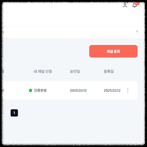 화면으로 이동했다면 우측 상단에 위치하고 있는 [채널 등록] 버튼을 선택해 주도록 하자.