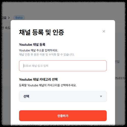이에 따른 채널 등록 및 인증을 위해 본인의 유튜브 채널 링크를 복사해서 해당 입력 란에 기재해 주면 되겠다.