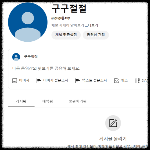유튜브 채널로 이동해서 [내 채널]-[채널 맞춤설정] 경로를 통해 이동해 주도록 하자.