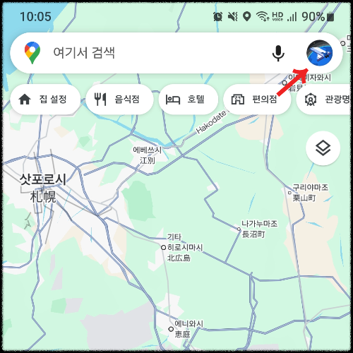 구글지도 오프라인 저장을 하기 위해서는 구글맵 메인 화면 내 우측 상단에 자리하고 있는 프로필을 선택해 주면 됩니다.